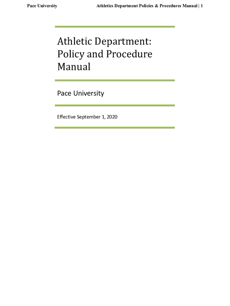 Pace UniversityAthletics Department Policies & Procedures Manual 1Athletic Department: Policy and Procedure Manual Pace UniversityEffective September 1, 2020Pace UniversityAthletics Department Policies