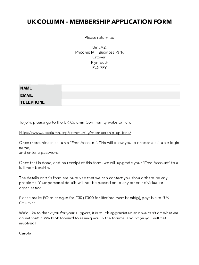 Get the free UK COLUMN - MEMBERSHIP APPLICATION FORM - Ukcolumn - Fill ...