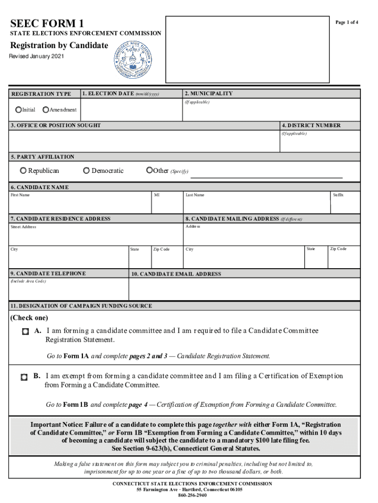 SEE FORM 1Updated 04/22/2016 with AM suggestionsSTATE ELECTIONS ENFORCEMENT COMMISSION Page 1 of 4Registration by Candidate