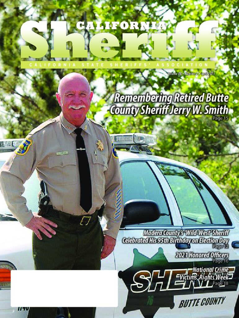Volume 36 Number 2 April 2021Remembering Retired Butte County Sheriff Jerry W. Smith Page 15Madera Counties The Wildest Sheriff Celebrated His 95th Birthday on Election Day Page 122021 Honored Officers
