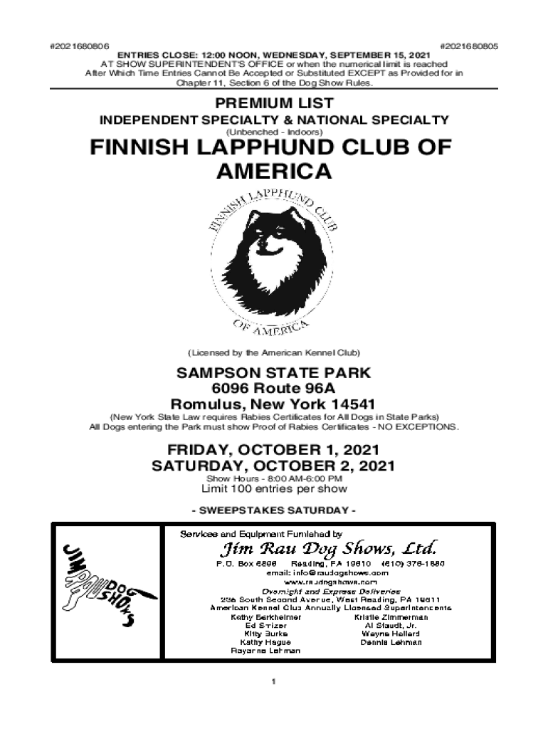#2021680806#2021680805 ENTRIES CLOSE: 12:00 NOON, WEDNESDAY, SEPTEMBER 15, 2021, AT SHOW SUPERINTENDENT IS OFFICE or when the numerical limit is reached After Which Time Entries Cannot Be Accepted