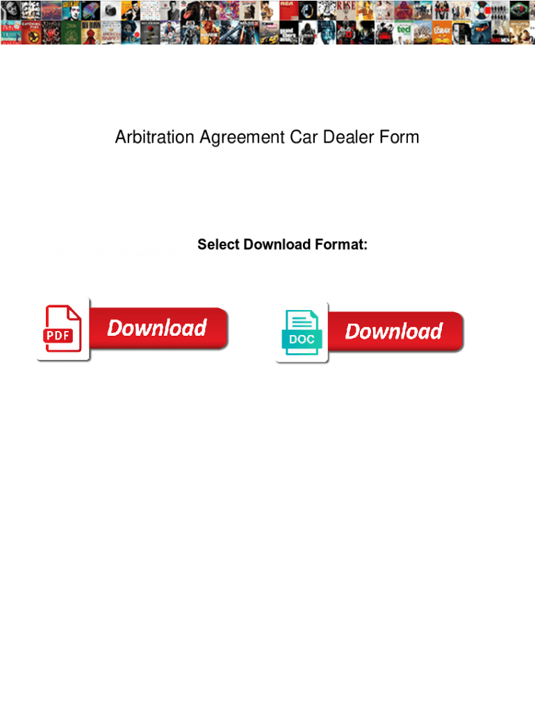 Get the free Arbitration Agreement Car Dealer Form. Arbitration Agreement Car Dealer Form fargo