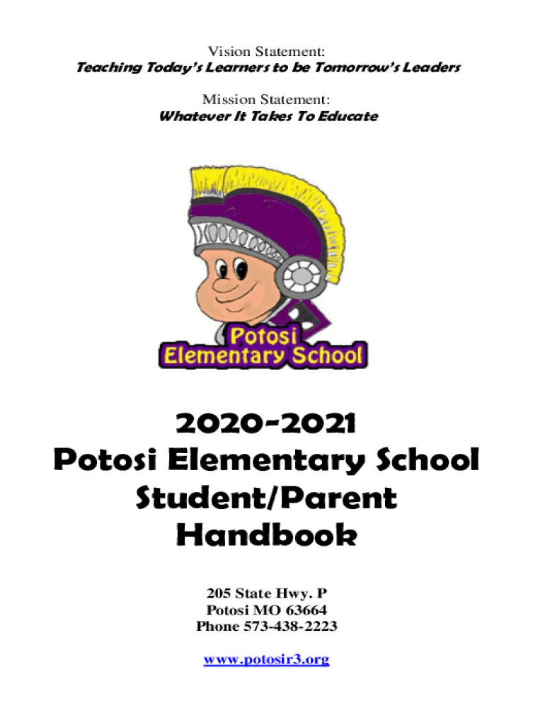 Vision Statement:Teaching Today's Learners to be Tomorrow's Leaders Mission Statement:Whatever It Takes To Educate20202021 Photos Elementary School Student/Parent Handbook 205 State Hwy. P Photos
