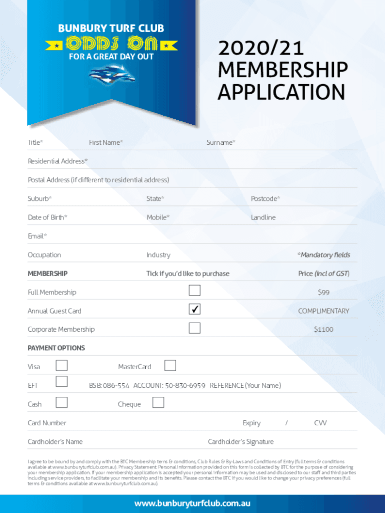 Get the free Membership Form - BUNBURY TURF CLUB 2020/21