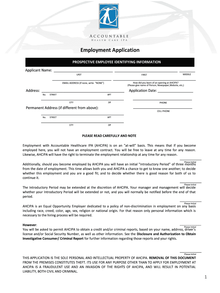 Get the free AHCIPA Employment Application