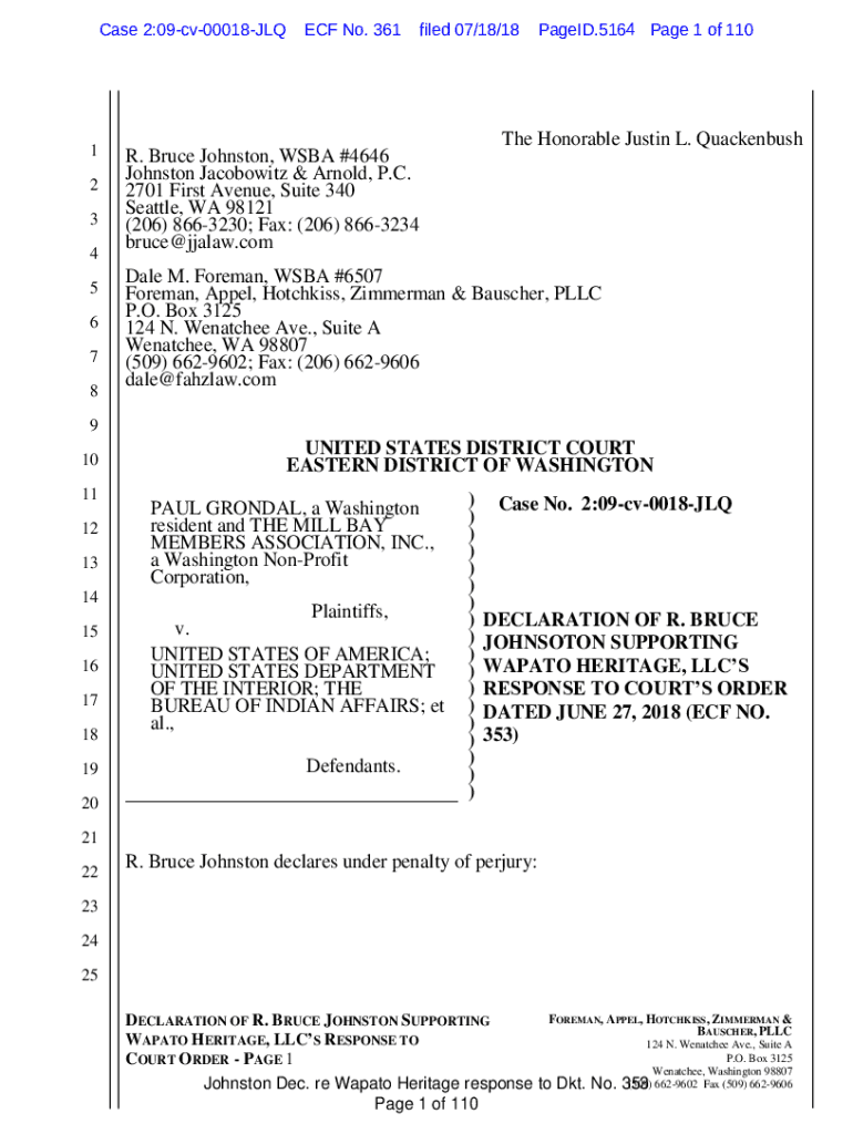 Case 2:09cv00018JLQ1 2 3 4 5 6 7 8ECF No. 361filed 07/18/18PageID.5164-Page 1 of 110The Honorable Justin L. QuackenbushR. Bruce Johnston, SBA #4646 Johnston Jacobite & Arnold, P.C. 2701 First Avenue,