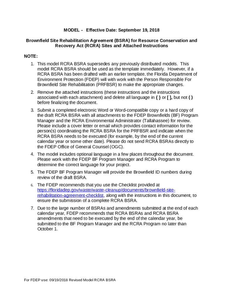 Template Brownfield Site Rehabilitation Agreement (BSRA) Amendment ... instructions