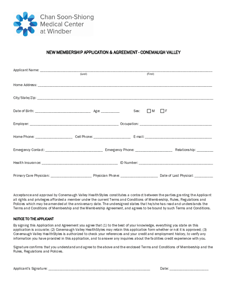 Get the free NEW MEMBERSHIP APPLICATION & AGREEMENT - CONEMAUGH VALLEY