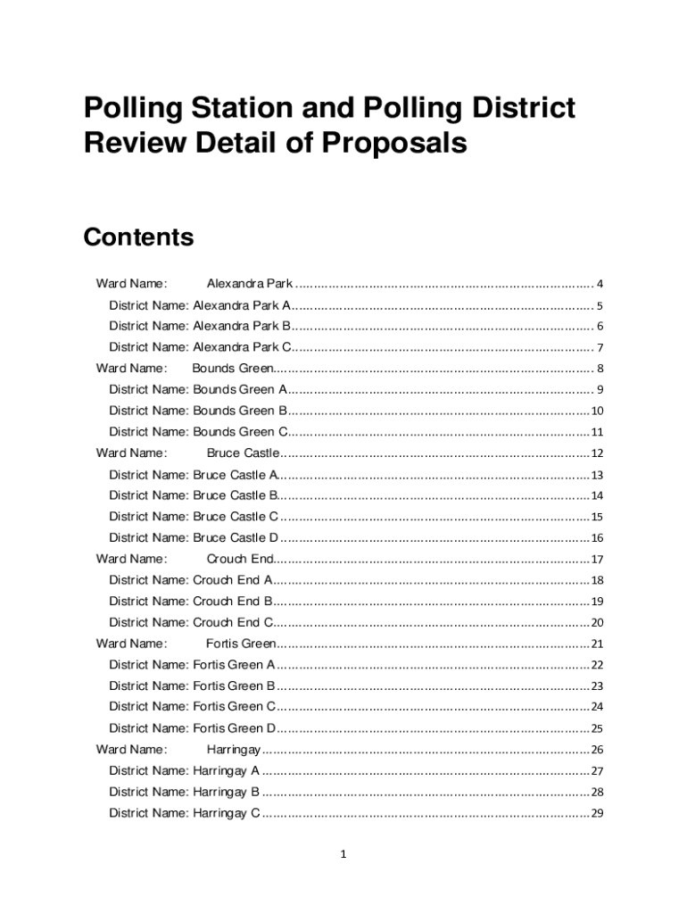 Polling Station and Polling District Review Detail of Proposals Contents Ward Name:Alexandra Park ................................................................................. 4District Name: