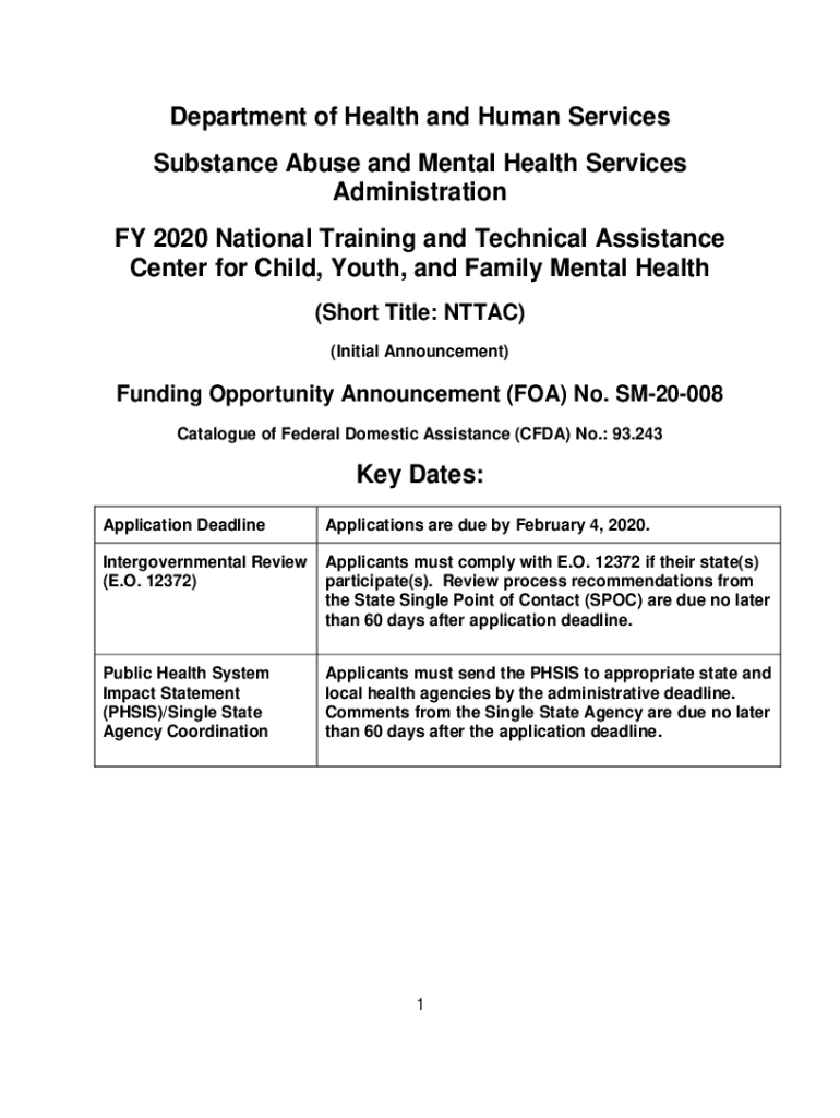 Department of Health and Human Services Substance Abuse and Mental Health Services Administration FY 2020 National Training and Technical Assistance Center for Child, Youth, and Family Mental Health