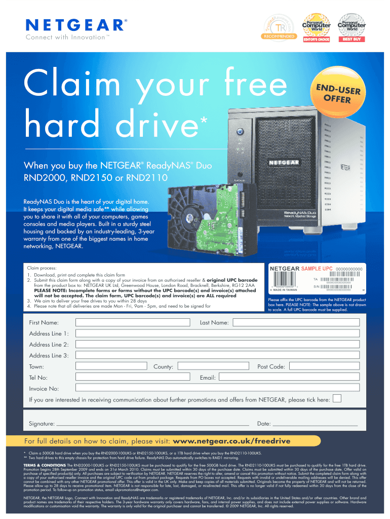 Claim your free hard drive* END-USE R OFFER When you buy the NETGEAR Ready NAS Duo RND2000, RND2150 or RND2110 Ready NAS Duo is the heart of your digital home. It keeps your digital media safe* while