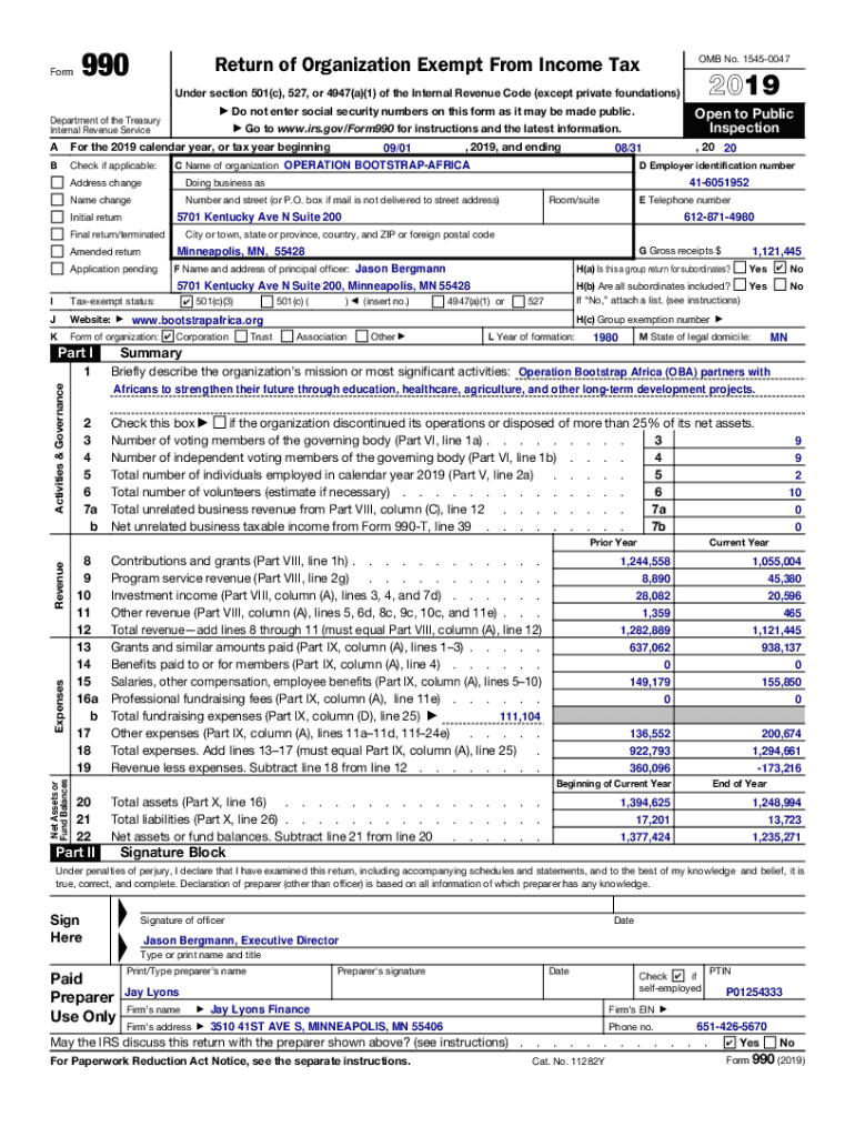 Form990Return of Organization Exempt From Income Tax OMB No. 154500472019Under section 501(c), 527, or 4947(a)(1) of the Internal Revenue Code (except private foundations) Department of the Treasury