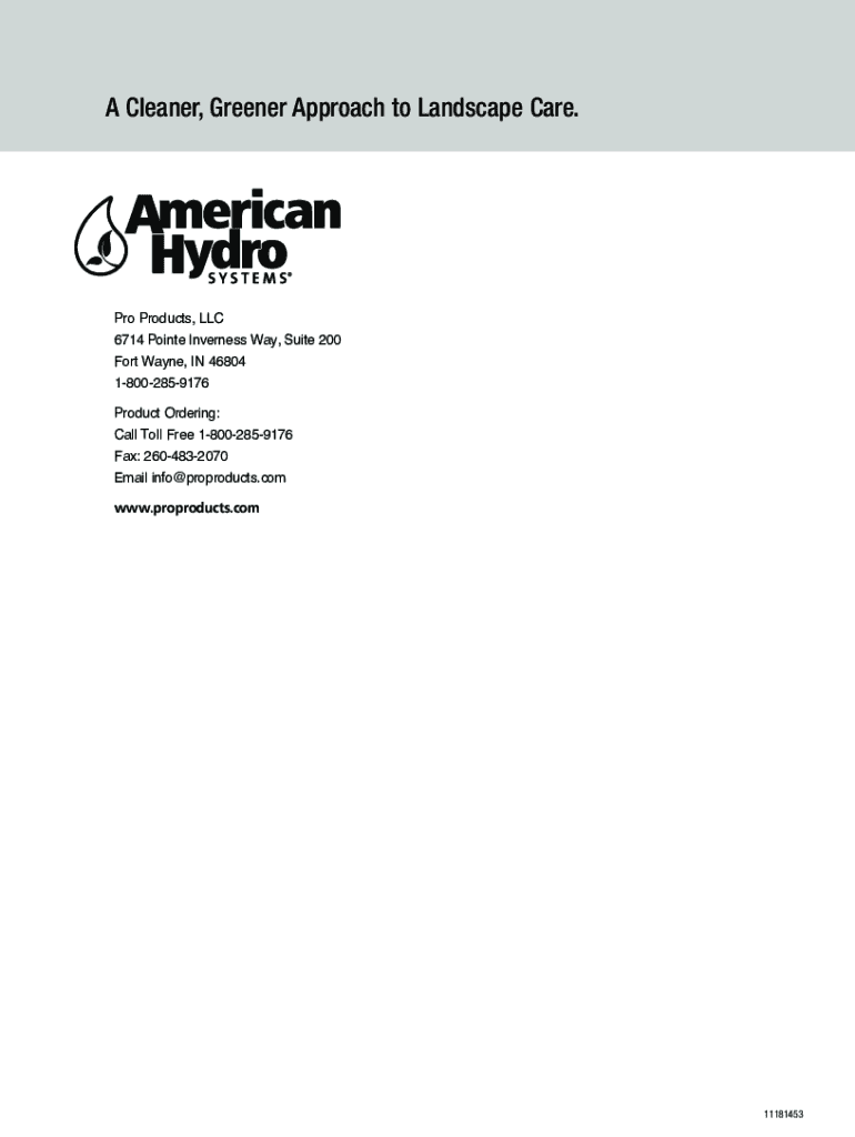 A Cleaner, Greener Approach to Landscape Care. Pro Products, LLC 6714 Point Inverness Way, Suite 200 Fort Wayne, IN 46804 18002859176 Product Ordering: Call Toll Free 18002859176 Fax: 2604832070 Email
