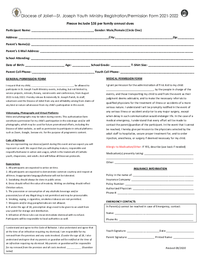 Get the free Joseph Youth Ministry Registration/Permission Form 2021-2022