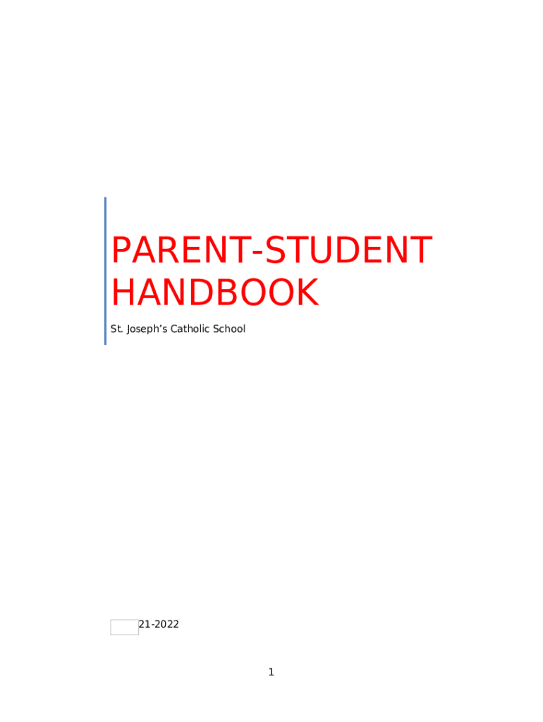 Instructions for the PARENT-STUDENT HANDBOOK. St. Josephs Catholic School form