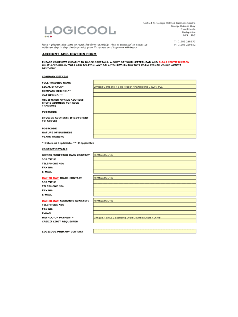 Units 45, George Holmes Business Center George Holmes Way Swadlincote Derbyshire DE11 9DFNote please take time to read this form carefully. This is essential to assist us with our day-to-day dealings