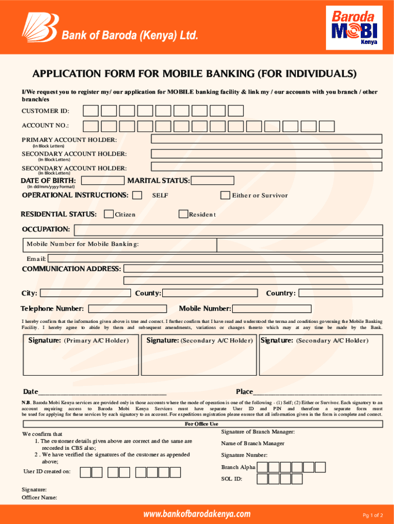 APPLICATION FORM FOR MOBILE BANKING (FOR INDIVIDUALS) I/We request you to register my/ our application for MOBILE banking facility & link my / our accounts with you branch / other branch/customer