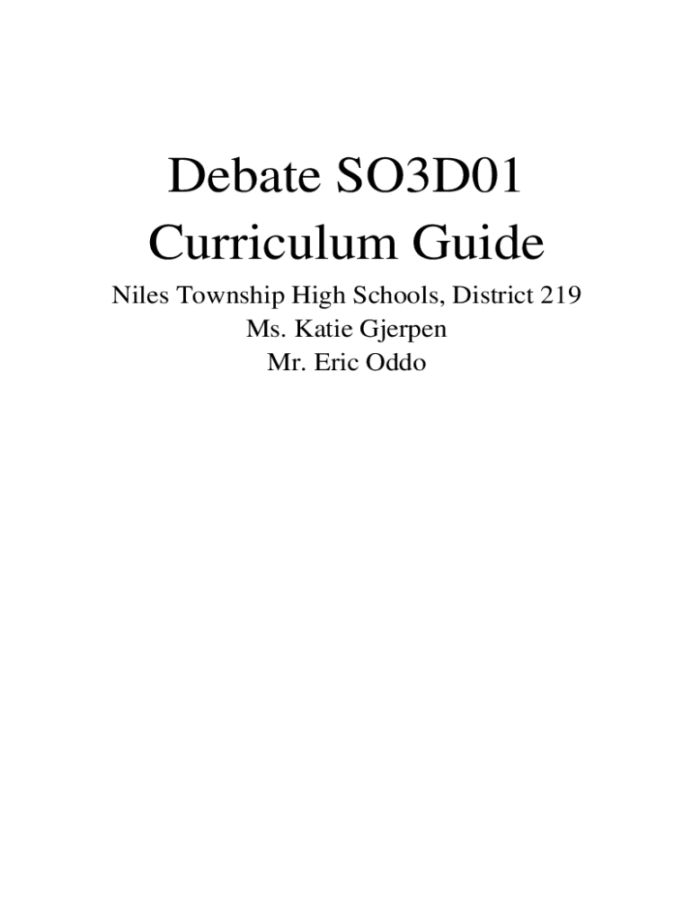 Debate coaches and administrators in the Niles school district are required to file the niles debate curriculum guide.
