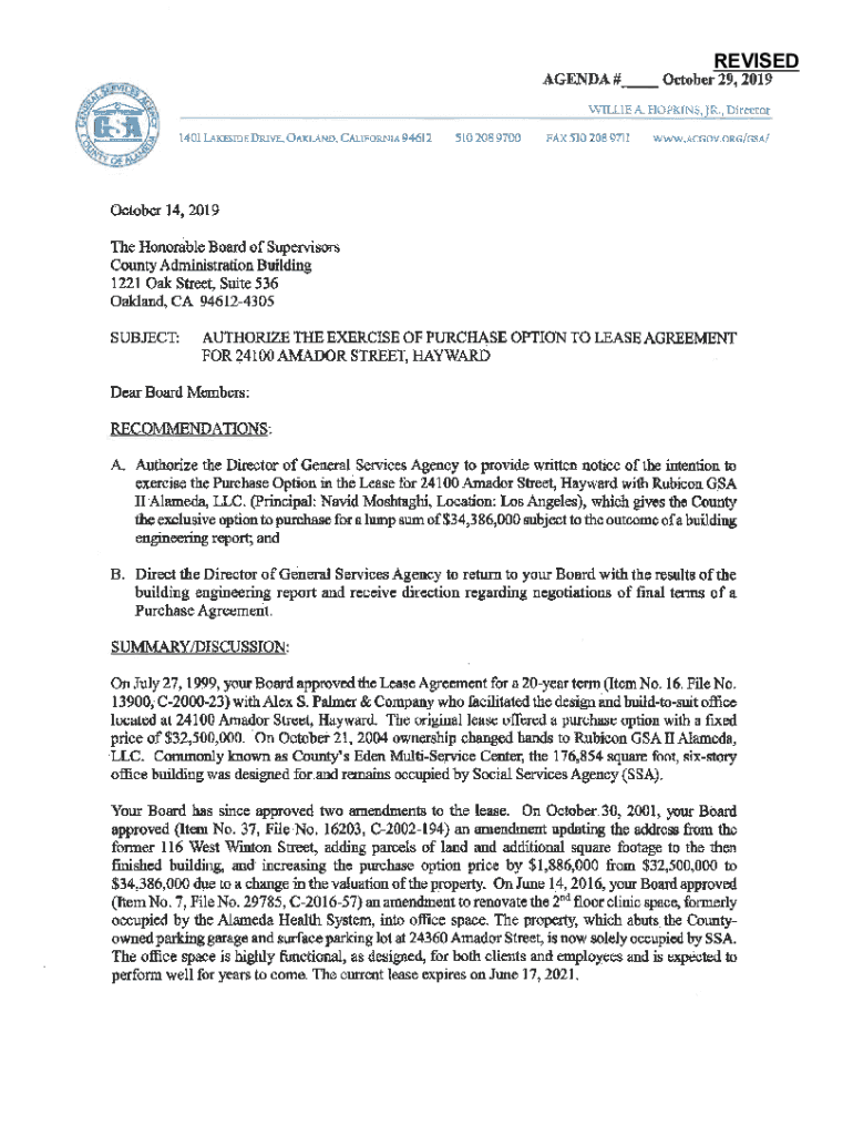 REVISEDORIGINAL County of Alameda General Services Agency Darlene A. Smith, DirectorBUILD TOS UIT OFFICE LEASEHAYWARD, CALIFORNIATABLE OF CONTENTS STANDARD FULLSERVICE OFFICE LEASE ...........................................................................