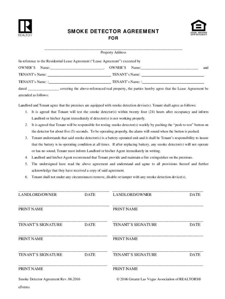 Get the free Nevada Landlord Tenant Smoke Detector Agreement