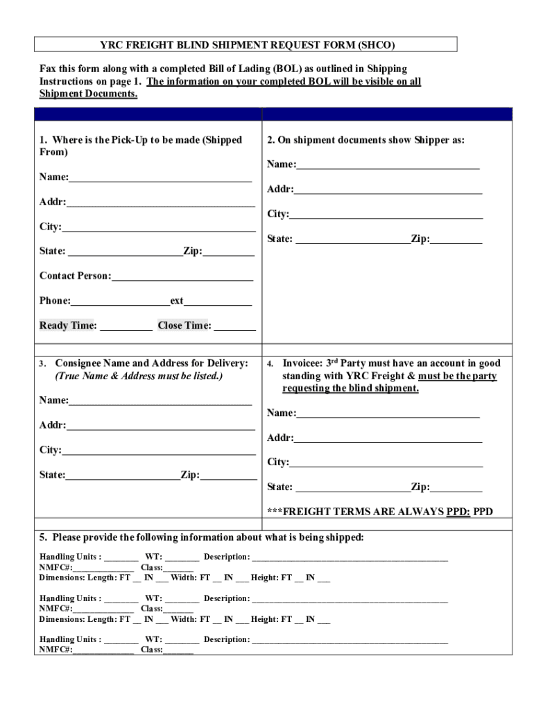 Shipping Instructions for Customers Requesting a Blind Shipment (Shipment Coordination) 1. It is up to you to instruct the shipping location to fill out a bill of lading per instructions below and