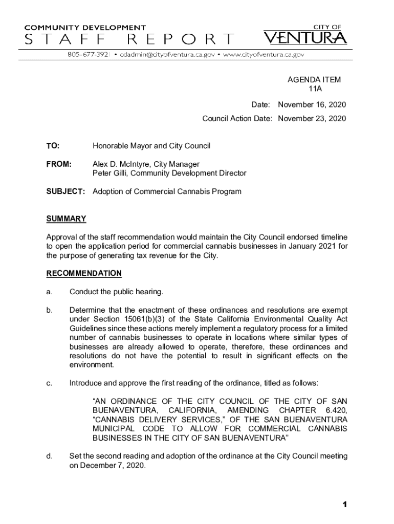 AGENDA ITEM 11A Date:November 16, 2020Council Action Date: November 23, 2020, TO:Honorable Mayor and City Councilor:Alex D. McIntyre, City Manager Peter Gill, Community Development DirectorSUBJECT: