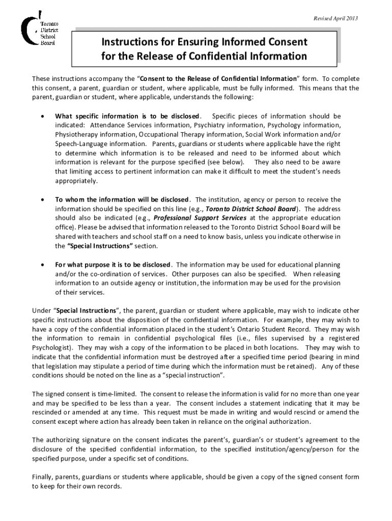 Revised April 2013Instructions for Ensuring Informed Consent for the Release of Confidential Information These instructions accompany the Consent to the Release of Confidential Information form. To