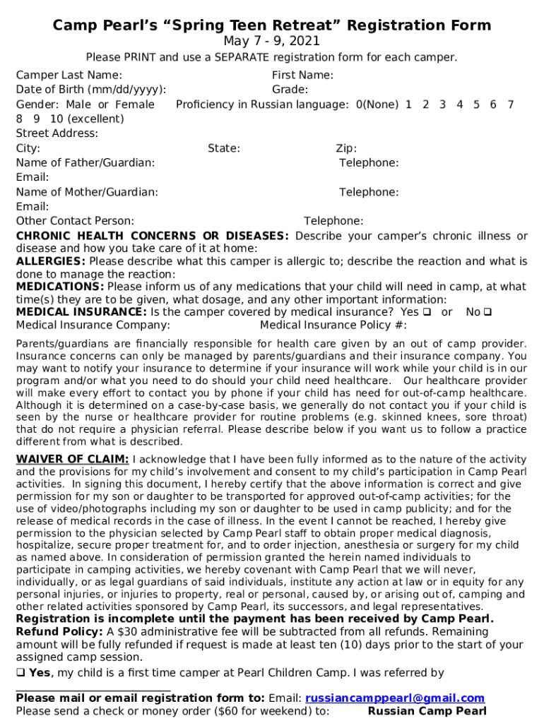 How should you fill out the newlifedc.orgwp-contentuploadsRegistration for Children Summer Camp 'PEARL ' template