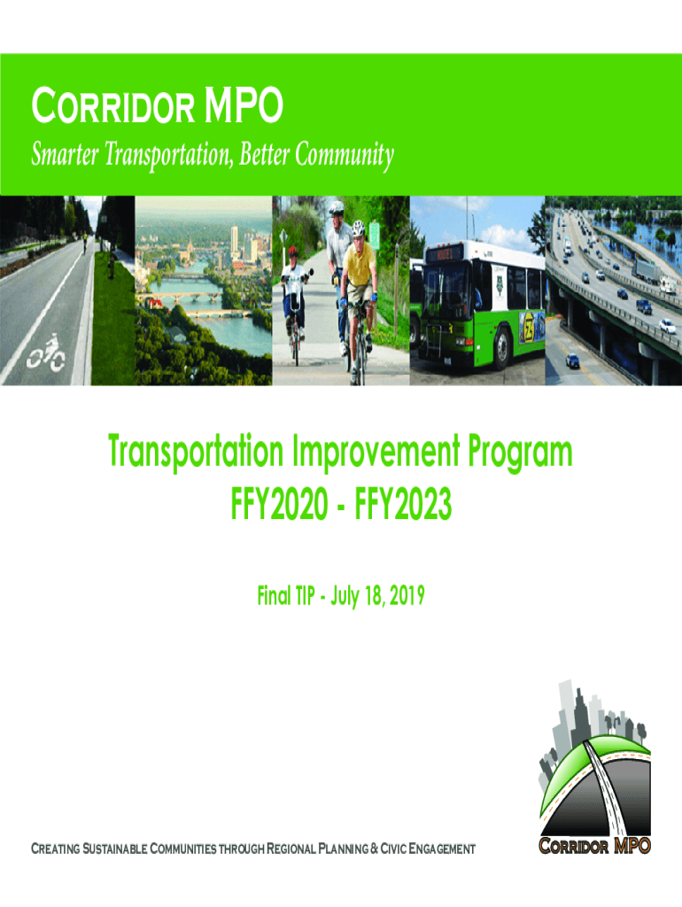 Corridor Postmaster Transportation, Better CommunityTransportation Improvement Program FFY2020 FFY2023 Final TIP July 18, 2019Creating Sustainable Communities through Regional Planning & Civic EngagementCorridormpoTransportation
