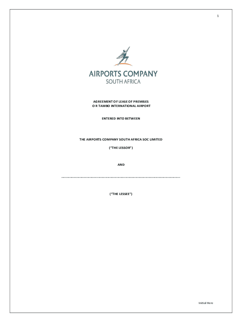 1AGREEMENT OF LEASE OF PREMISES O R RAMBO INTERNATIONAL AIRPORTENTERED INTO BETWEEN AIRPORTS COMPANY SOUTH AFRICA SOC LIMITED (THE LESSOR)AND(THE LESSEE)Initial HereANNEXURESTABLE OF CONTENTS CLAUSE