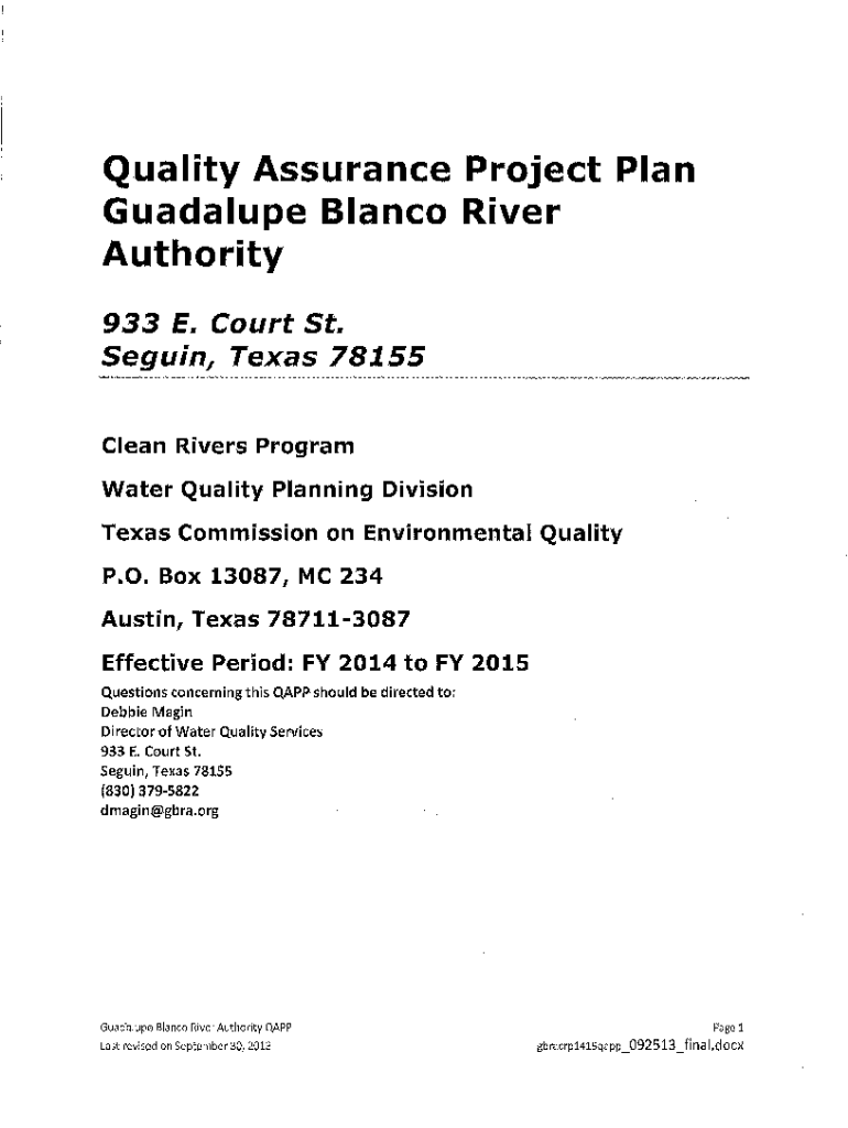Quality Assurance Project Plan Guadalupe Blanco River Authority 933 E. Court St. Seguin, Texas 78155 Clean Rivers Program Water Quality Planning Division Texas Commission on Environmental Quality