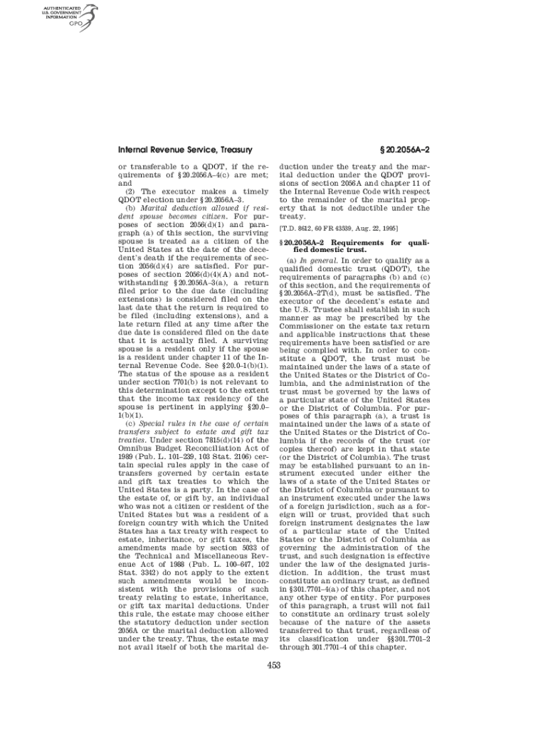 Internal Revenue Service, Treasury 20.2056A2or transferable to a DOT, if the requirements of 20.2056A4(c) are met; and (2) The executor makes a timely DOT election under 20.2056A3. (b) Marital deduction