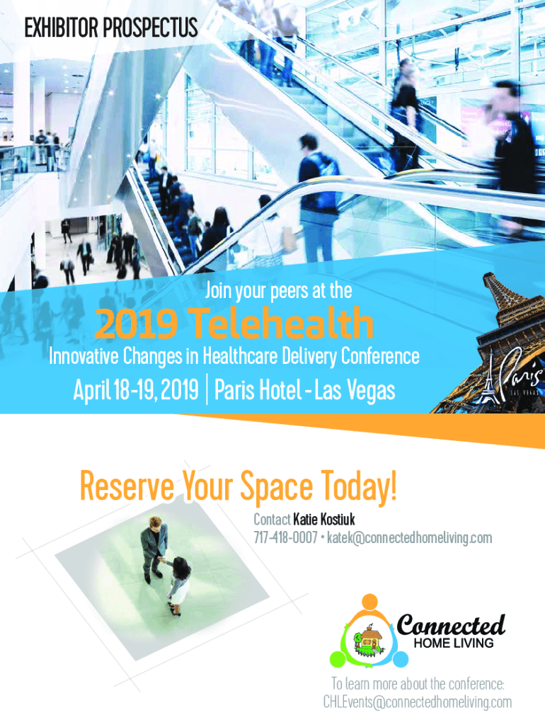 EXHIBITOR PROSPECTUSJoin your peers at the2019 TelehealthInnovative Changes in Healthcare Delivery Conference April 1819, 2019 Paris Hotel Las VegasReserve Your Space Today! Contact Katie Hosting