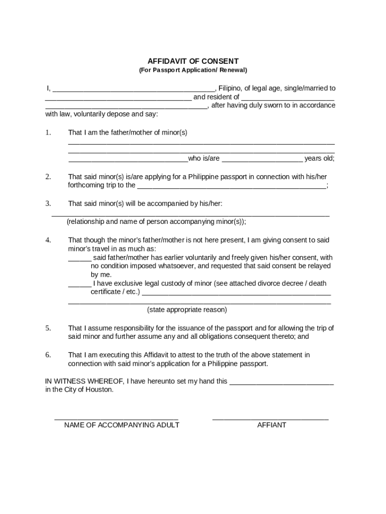 Template AFFIDAVIT OF CONSENT - Department of Foreign Affairs instructions
