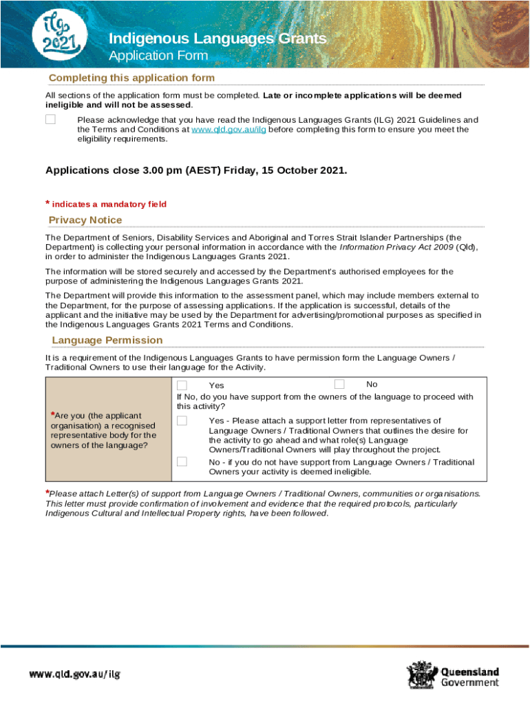 What is Indigenous Languages Grants 2021 application . Indigenous Languages Grants 2021 application Form?