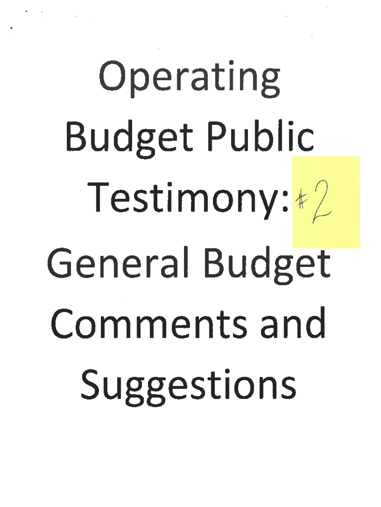 Get the free Operating Budget Public Testimony: General Budget Comments and ...
