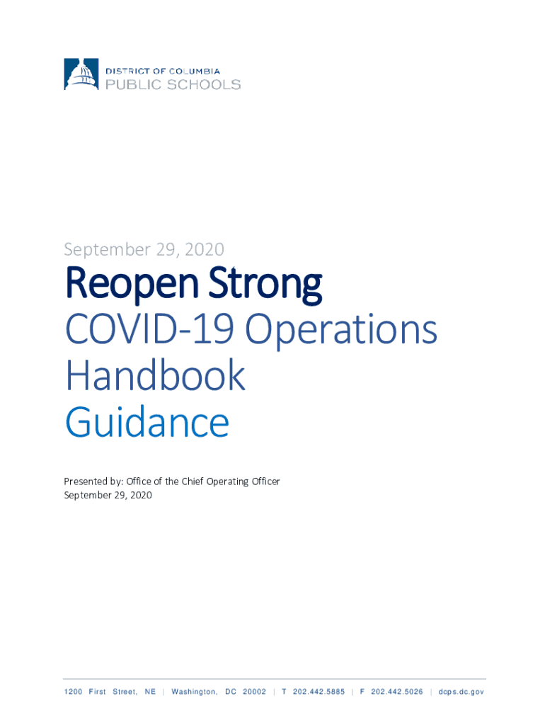 September 29, 2020Reopen Strong COVID-19 Operations Handbook Guidance Presented by: Office of the Chief Operating Officer September 29, 20201200 Fir st Street, NE Washington, DC 20002 T202.442.5885
