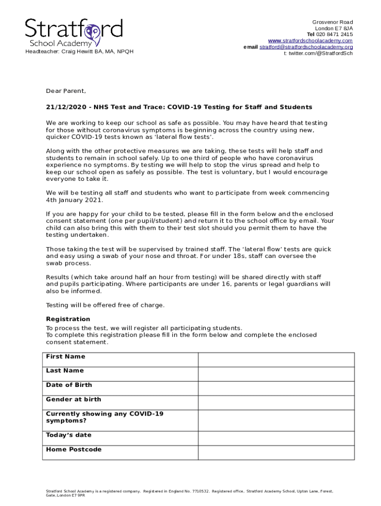 Template NHS Test and Trace: COVID-19 testing for staff and pupils instructions