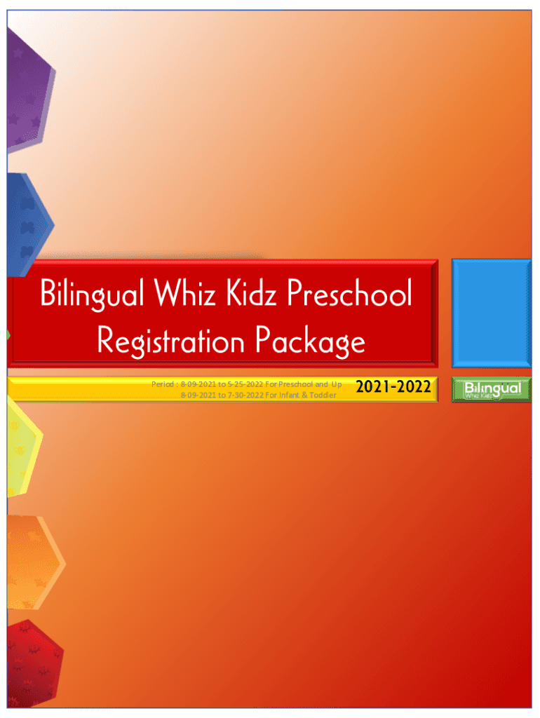 Bilingual Whiz Kids Preschool Registration Package Period : 8092021 to 5252022 For Preschool and Up 8092021 to 7302022 For Infant & Toddler20212022Cultivating the Bilingual, Literate, Culturally Mindful