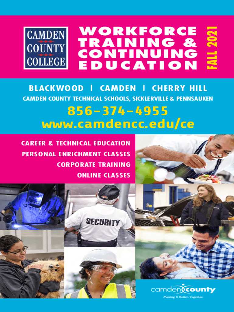 FALL 2021WORKFORCE T RAIN I NG & CONTINUING E D U C AT I ON BLACKWOOD CAMDEN CHERRY HILL CAMDEN COUNTY TECHNICAL SCHOOLS, SICKLERVILLE & PENNSAUKEN8563744955 www.camdencc.edu/ce CAREER & TECHNICAL