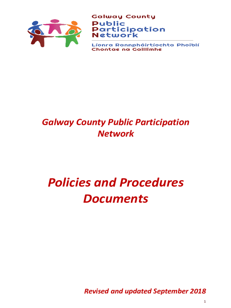 Galway County Public Participation NetworkPolicies and Procedures DocumentsRevised and updated September 2018 1Table of Contents PPN REPRESENTATIVES CHARTER 1.0 Introduction 2.0 Aim 3.0 What is a