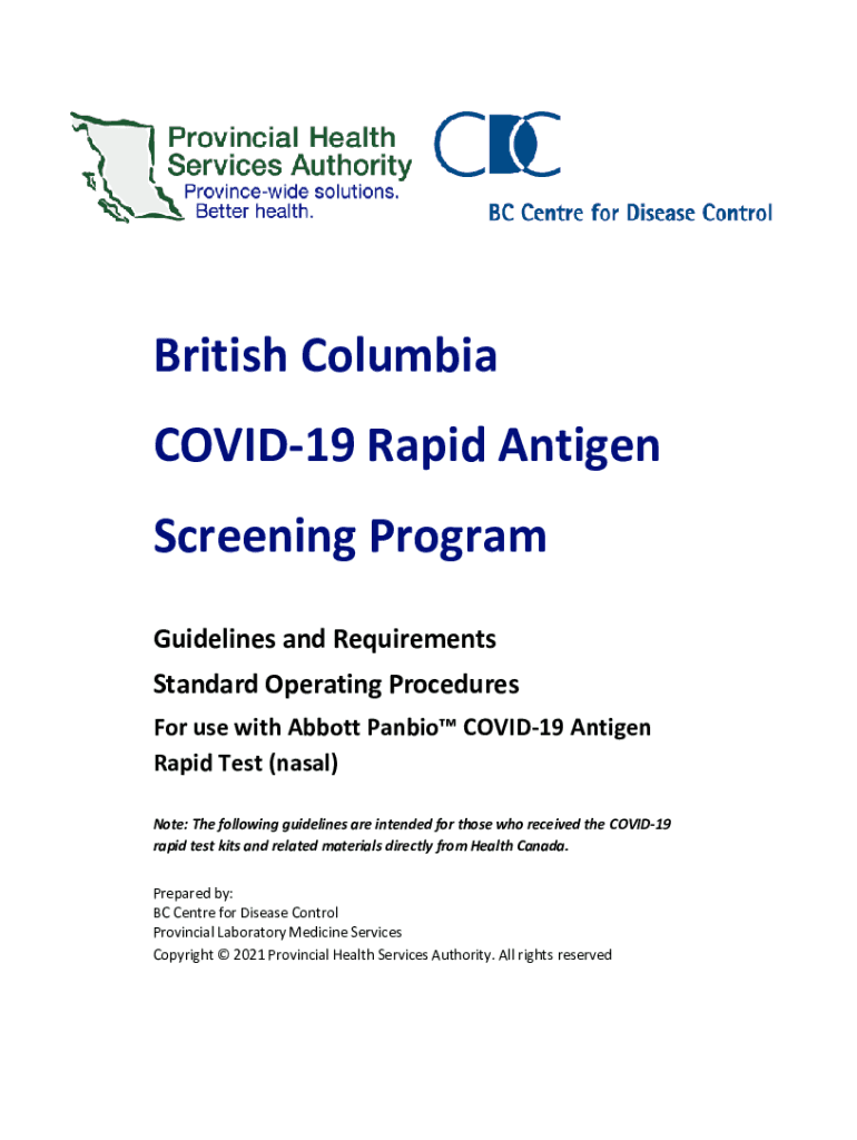 British Columbia COVID-19 Rapid Antigen Screening Program Guidelines and Requirements Standard Operating Procedures For use with Abbott Pan bio COVID-19 Antigen Rapid Test (nasal) Note: The following