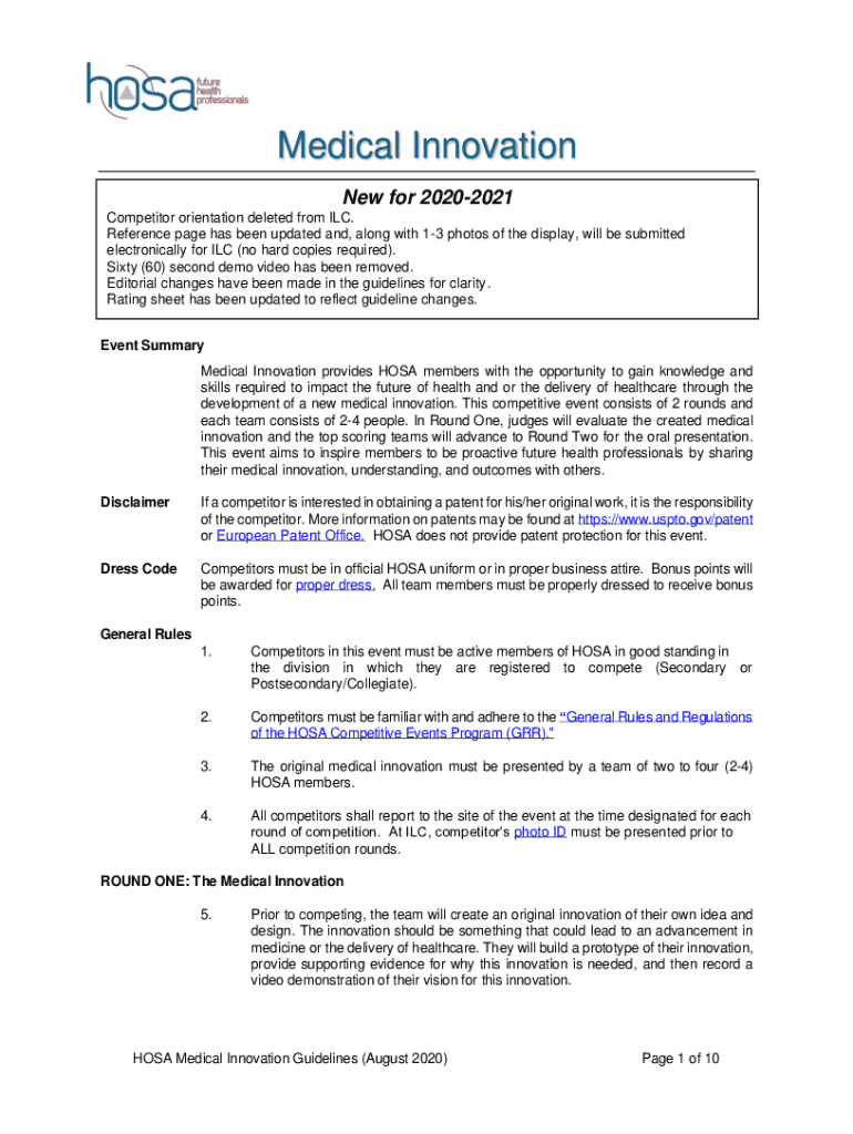 Medical Innovation New for 20202021 Competitor orientation deleted from ILC. Reference page has been updated and, along with 13 photos of the display, will be submitted electronically for ILC (no