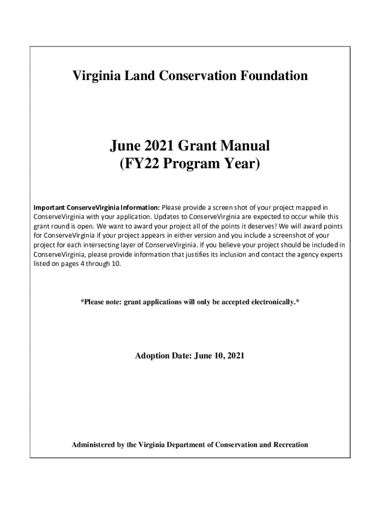 Virginia Land Conservation Foundation June 2021 Grant Manual (FY22 Program Year) Important Conserve Virginia Information: Please provide a screenshot of your project mapped in Conserve Virginia with
