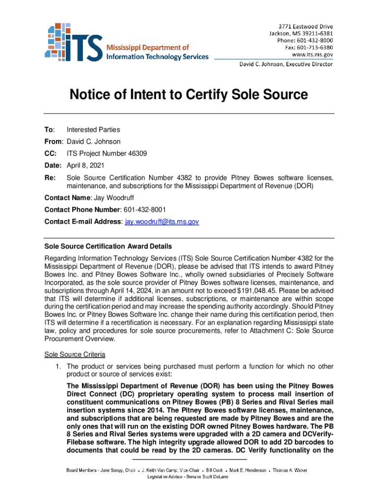 Get the free Sole Source Notification of Award - rfps.its.ms.gov - rfps its ms