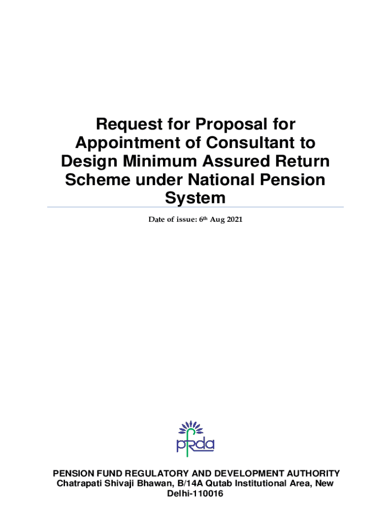 Request for Proposal for Appointment of Consultant to Design Minimum Assured Return Scheme under National Pension System Date of issue: 6th Aug 2021PENSION FUND REGULATORY AND DEVELOPMENT AUTHORITY