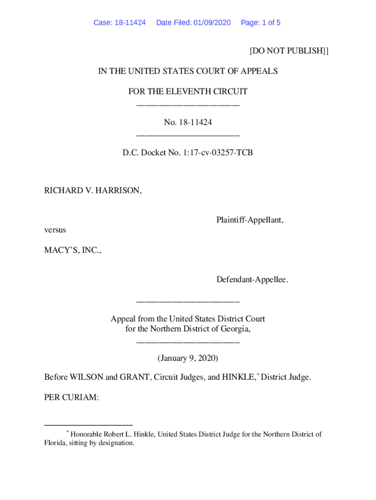 Case: 1811424Date Filed: 01/09/2020Page: 1 of 5 DO NOT PUBLISH IN THE UNITED STATES COURT OF APPEALS FOR THE ELEVENTH CIRCUIT No. 1811424 D.C. Docket No. 1:17cv03257TCBRICHARD V. HARRISON, PlaintiffAppellant,