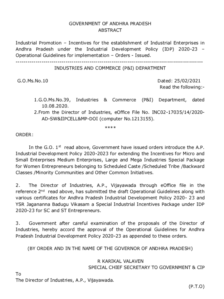 GOVERNMENT OF ANDHRA PRADESH ABSTRACT Industrial Promotion Incentives for the establishment of Industrial Enterprises in Andhra Pradesh under the Industrial Development Policy (IDP) 202023 Operational