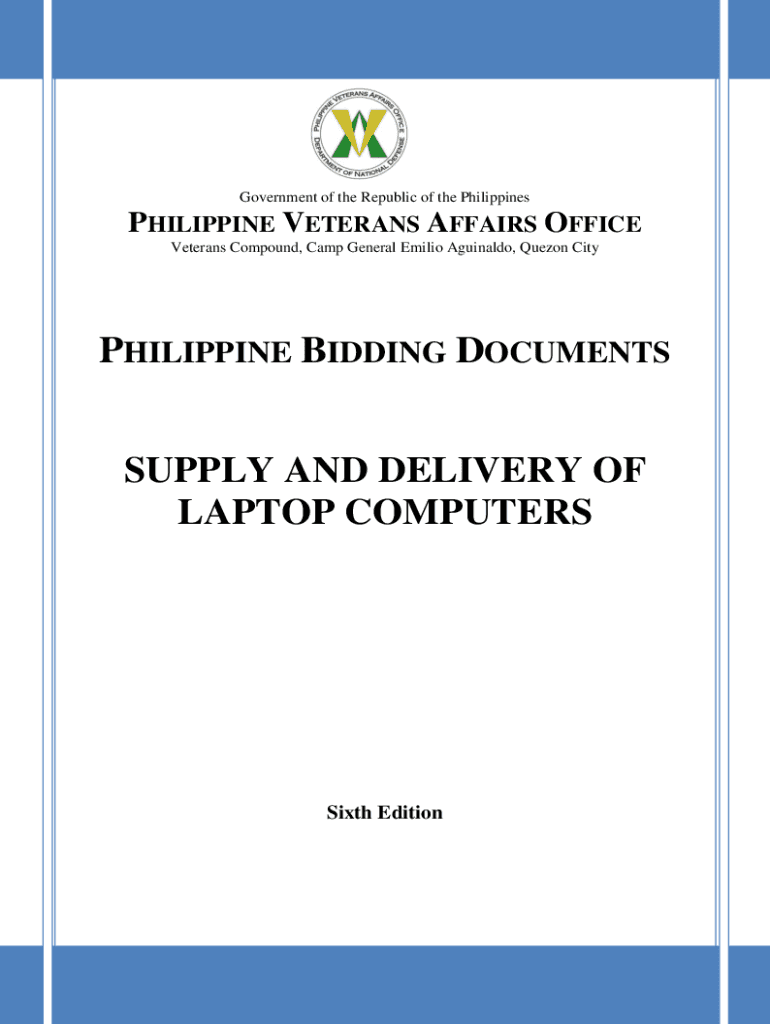 Government of the Republic of the PhilippinesPHILIPPINE VETERANS AFFAIRS OFFICE Veterans Compound, Camp General Emilio Aguinaldo, Quezon CityPHILIPPINE BIDDING DOCUMENTS SUPPLY AND DELIVERY OF LAPTOP