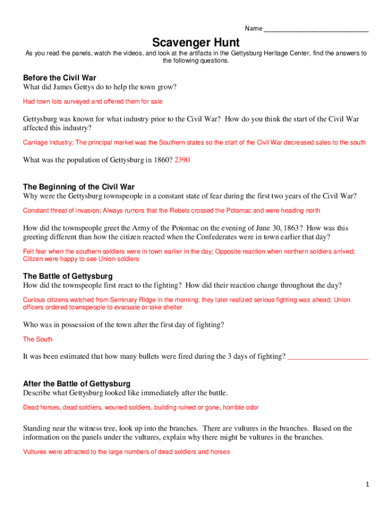 Get the free Name Scavenger Hunt - Gettysburg Heritage Center